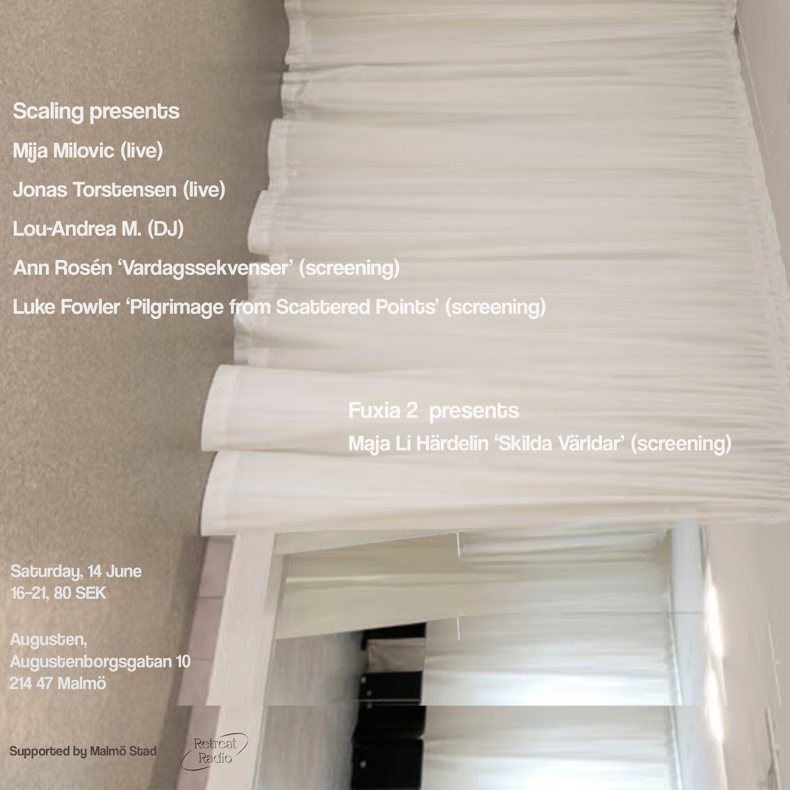 19:00 – 20:00: Sicherheit av Saskia Holmkvist, Ellen Nyman & Oprea Corina och Scented Rooms av Shauheen Daneshfar