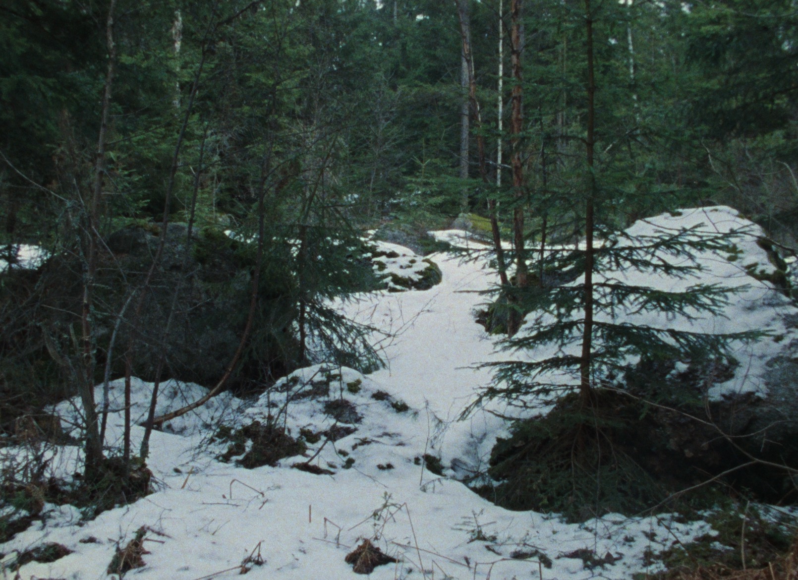 Landscape is Söderquist’s first minimalistic film. The slow camera shots show the inertia of nature and the temporality of thoughtfulness. The film is cut in motion to give a coherent structure of movement, a kind of course of events, through a multifaceted landscape of rich ferns, swaying treetops, winding roots alternated with reflections in a rippling stream. Landscape is a focused and tightly formed panorama, whose masterly projection of natural sound and cyclical construction are manifested in seasonal color- and light variations and in flowing water throughout the film.