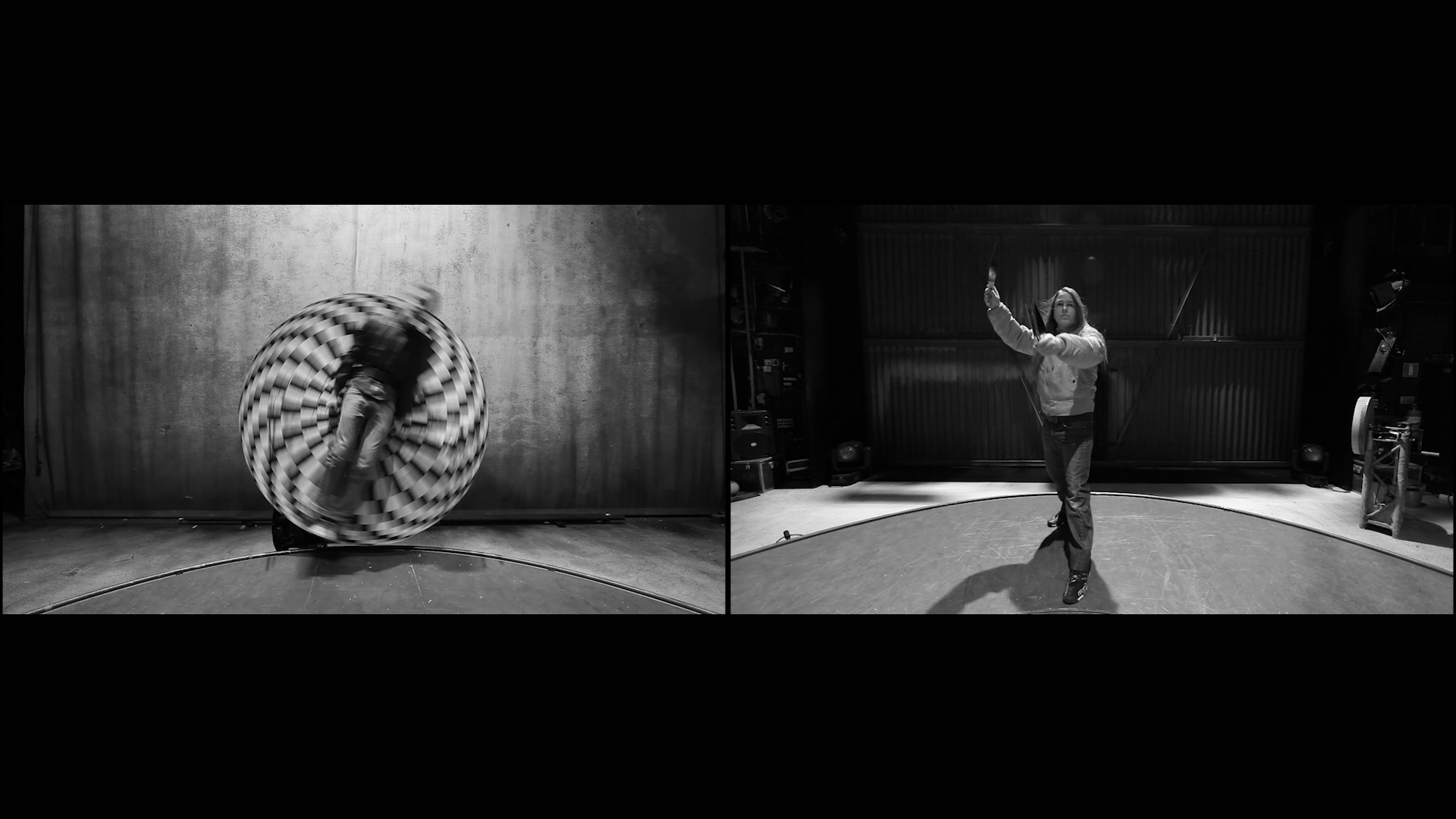 Drawing on his ongoing interest in comparing different professions to that of the artist, Mullan uses Intermorior as a metaphor for the constant negotiation of control, intuition, and uncertainty inherent in artistic practice. The “wheel of death” becomes a stage for questioning the meaning and value of being an artist: the willingness to expose oneself, to take risks, and to trust in a process that is both unpredictable and deeply human.