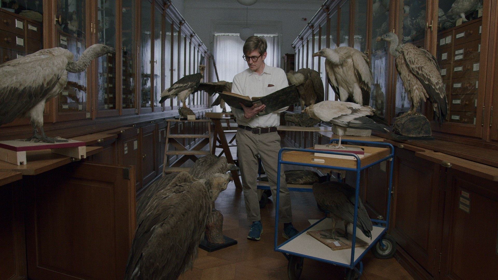 Tales of death and loss, being eaten and eating, hierarchies and love are woven together by a female presenter and a man in search of disappearing scavenging birds, where the desperate search is reflected in a parallel dissolution of both the protagonists and the birds.